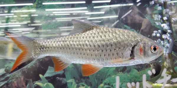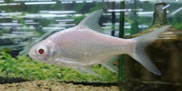 プラチナレッドフィンバルブ こちらも大人しくて混泳向きなコイです!真っ白なので水槽のアクセントにも