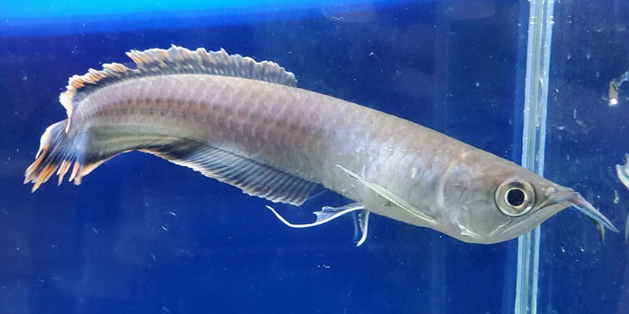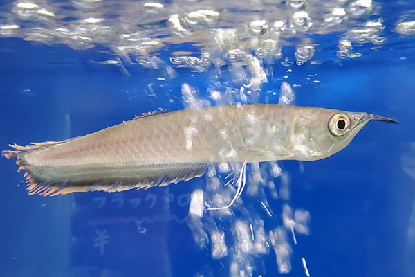 ブラックアロワナ 今年はたくさんベビーがきてたブラックアロワナですが大きめの個体もきてました!だいたい17センチくらいの個体でしょうか??ただ問屋さんにくる途中の袋のなかでケンカしてしまったみたいでヒレがボロボロです…体はしっかりしてるのでヒレがもう少しキレイになったらサイトに載せる予定です!