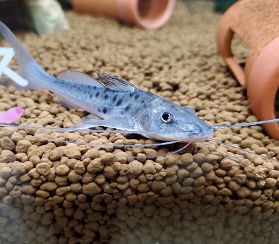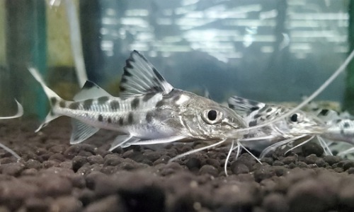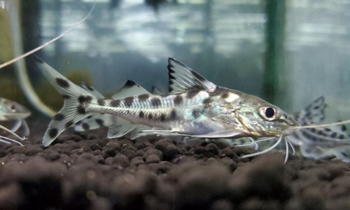 スポッテッドピニランプス よく泳ぐかっこいいピメロディアです。大人しくエサもなんでも食べてくれる種類なので飼育しやすいです!たまに他の大型ナマズのインボイスで来てガッカリされたりもしますが僕は好きだったり