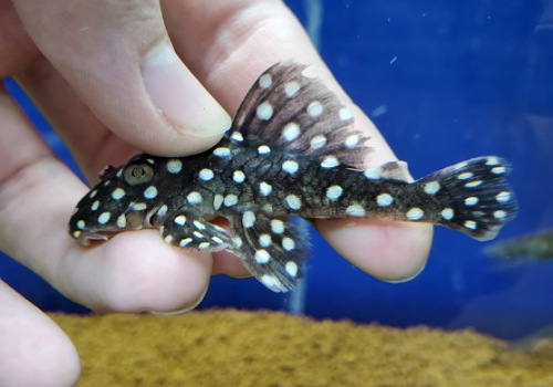 ブラックウィズホワイトカイザー こちらもナマズですね水玉模様になるプレコはそこそこいますが一番人気があると言われてますねスポットの大きさが絶妙です。ここまでのスポットのプレコってそんなにいないんです。